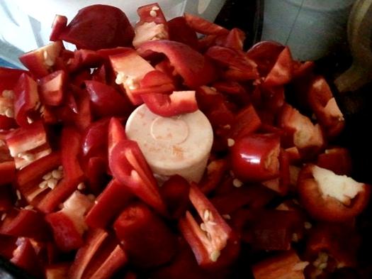 The mixture was transferred to a glass jar. As it sat in a dark corner on my kitchen counter, it was just about torture to see that delicious bright red sauce begging to be devoured.