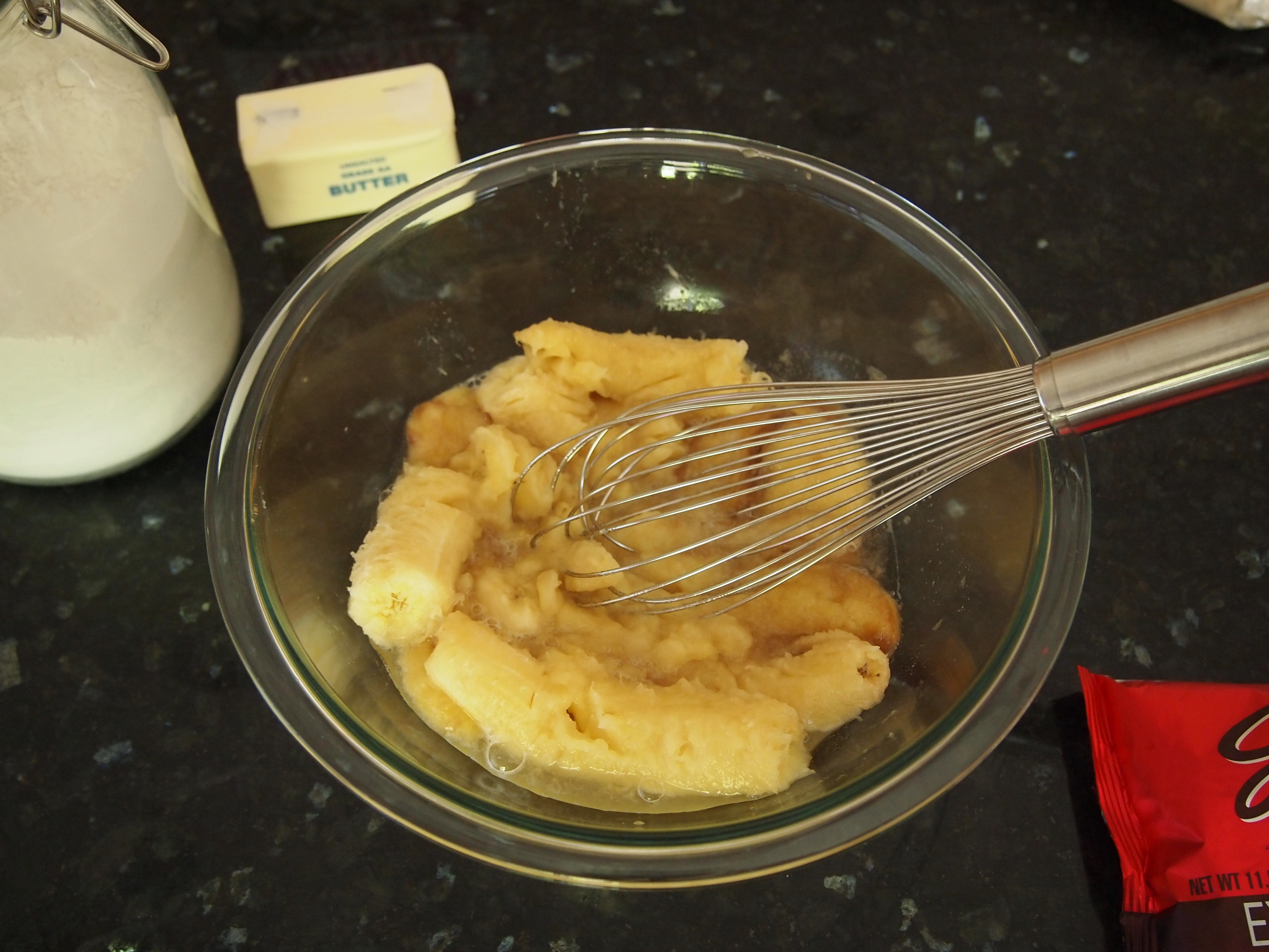 1 ¾ cups thoroughly mashed very overripe bananas (about 4 to 5 large bananas, almost completely brown/black)